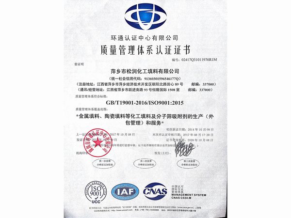 萍鄉市松潤化工填料有限公司位于江西省萍鄉市國家經濟開發區西區,是專業生產、經營陶瓷、聚丙烯、金屬填料、塔內件、水處理濾板、濾管、濾料、瓷球、分子篩、催化劑、活性炭、蜂窩陶瓷、瓷質耐磨托輥等系列產品的民營企業。所有產品由國家非金屬材料和設備質量監測中心監測檢驗認證。公司現有員工280人,其中有高、中級職稱技術人員36人。工藝先進,技術力量雄厚,產品質量可靠,配...